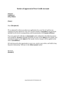 This free, printable letter is a template that notifies a new bank customer that their new credit account has been approved. The account number, credit line and due dates can be filled in by the sender according to their guidelines.