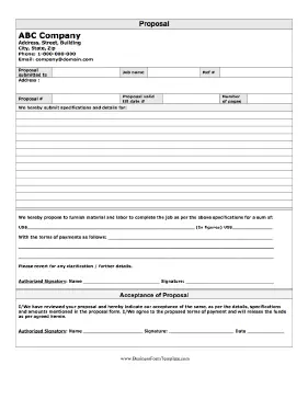Fields: proposal submitted to, job name, ref #, address, proposal #, proposal valid till date #, number of pages